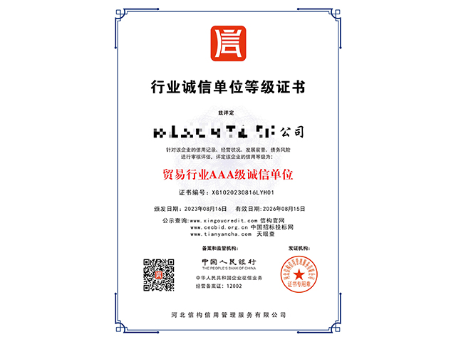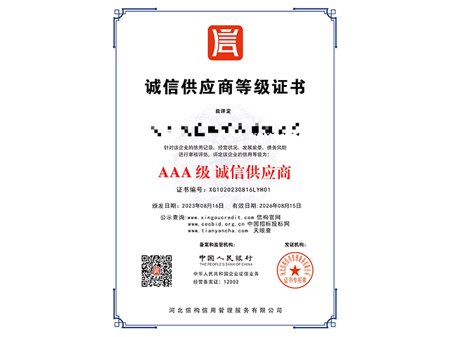 AAA級誠信供應(yīng)商認證是最高級別的認證,代表著供應(yīng)商在誠信度和可靠性方面表現(xiàn)出色。這···